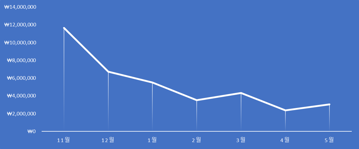 작년 11월부터 얼리버드 판매를 시작한 강의로, 첫 달에 실수령 기준 1천만원 이상, 둘째 달에 6백만원대의 수익을 얻었고, 그 이후로는 완만하게 하락 중이다. 초반 수익이 높은 것은, 얼리버드 할인이 있었던 것, 유튜브 등으로 유입된 팬들의 구매가 초반에 집중적으로 이루어졌던 것이 원인일 것이다. 이후에도 각종 프로모션 마케팅, 입소문 등으로 수익이 꾸준하게 나고 있다.