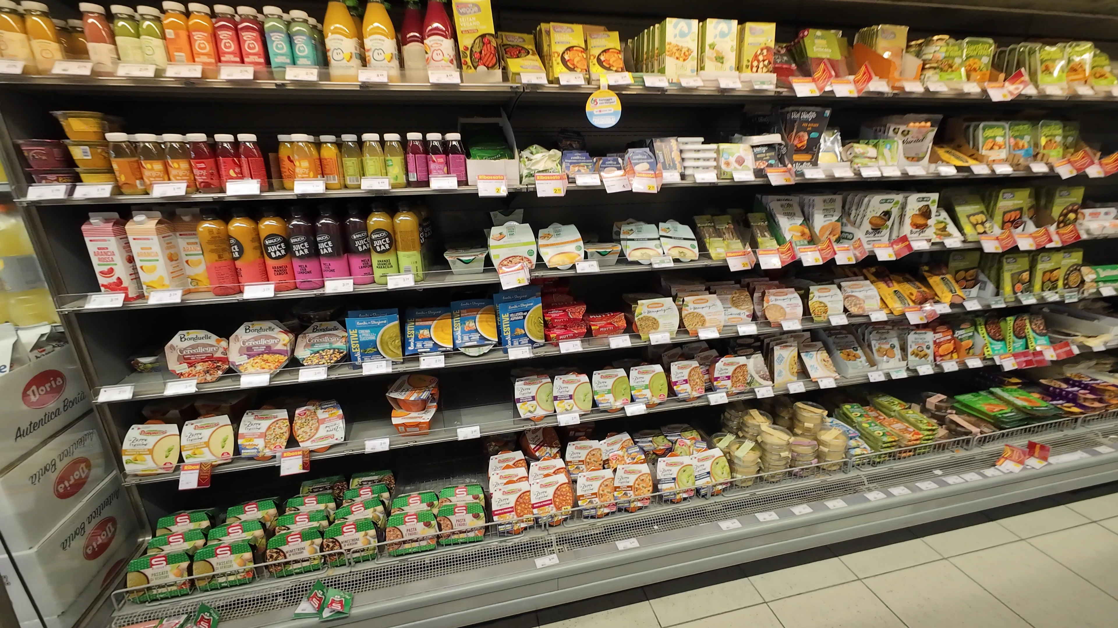 신선한 과일이 매우 다양하게 있다. 납작 복숭아 강력 추천한다! 바로 먹을 수 있는 손질된 과일팩도 여러 종류 있다.